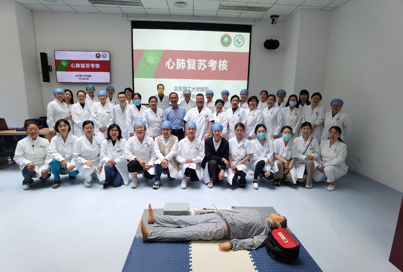 2025年5月13日-23日校医院开展全员“心肺复苏”技能培训与考核,全体工作人员89名参与。
